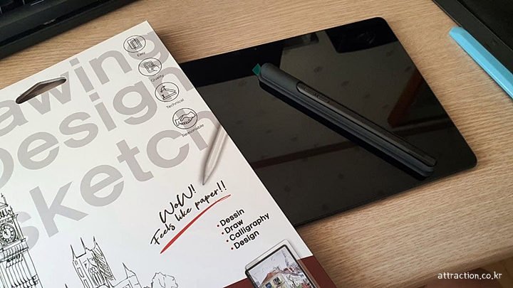 전자책은 글자가 뭉개지지도 않고 여러 리뷰에서 볼 수 있듯이 또렷하게 출력됐다. 빛 반사가 조금 거슬렸기에 종이질감 필름을 붙여 해결했다. 팬 활용도를 높이기 위해 종이질감 필름을 선택했는데 화질은 조금 탁해졌지만 전자책 용도로는 만족감이 높아졌다.